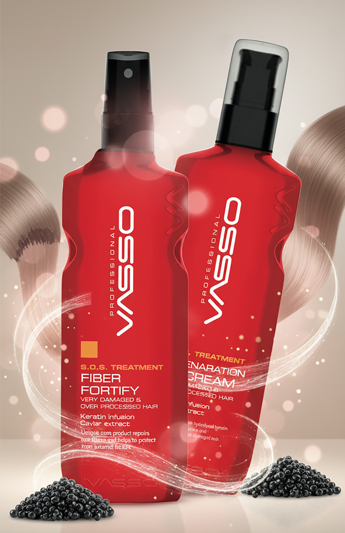 Powered by Keratin & Caviar Extract to repair bonds, restore strength and revive hair vitality.